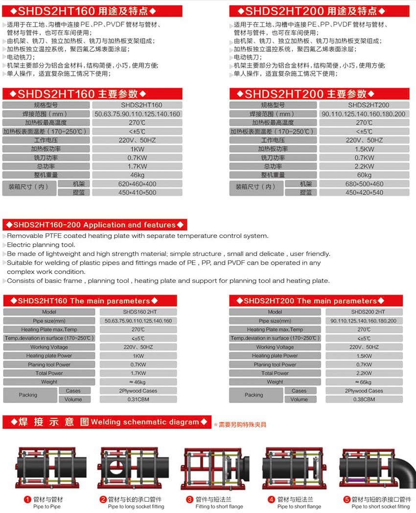 适用于在工地、沟槽中连接PE、PP、PVDF管材与管材、 管材与管件,也可在车间使用; 由机架、铣刀、独立加热板、铣刀与加热板支架组成; 加热板独立温控系统,聚四氟乙烯表面涂层;